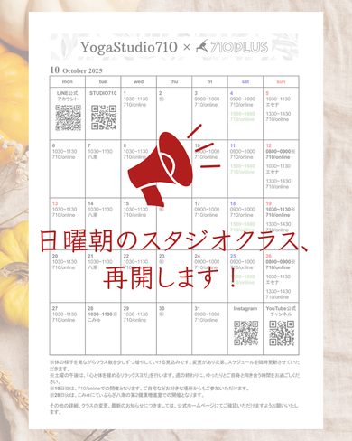 🌐 場所:YOGA STUDIO 710 / オンラインクラス